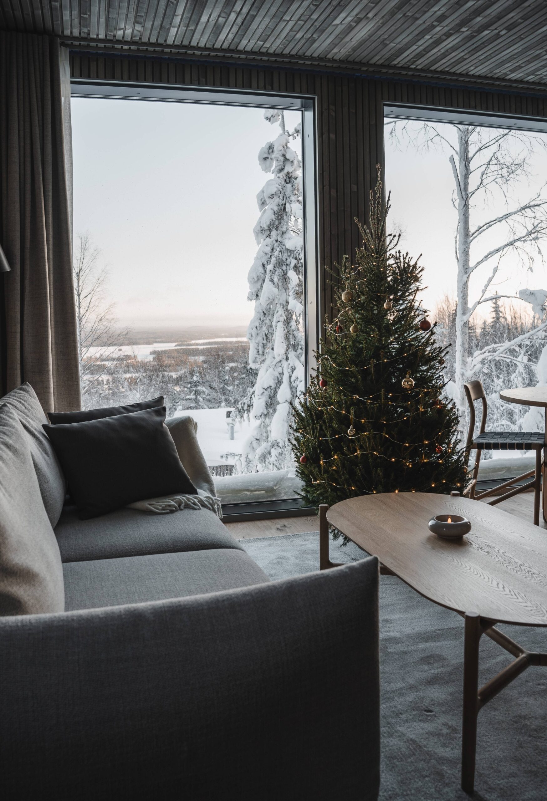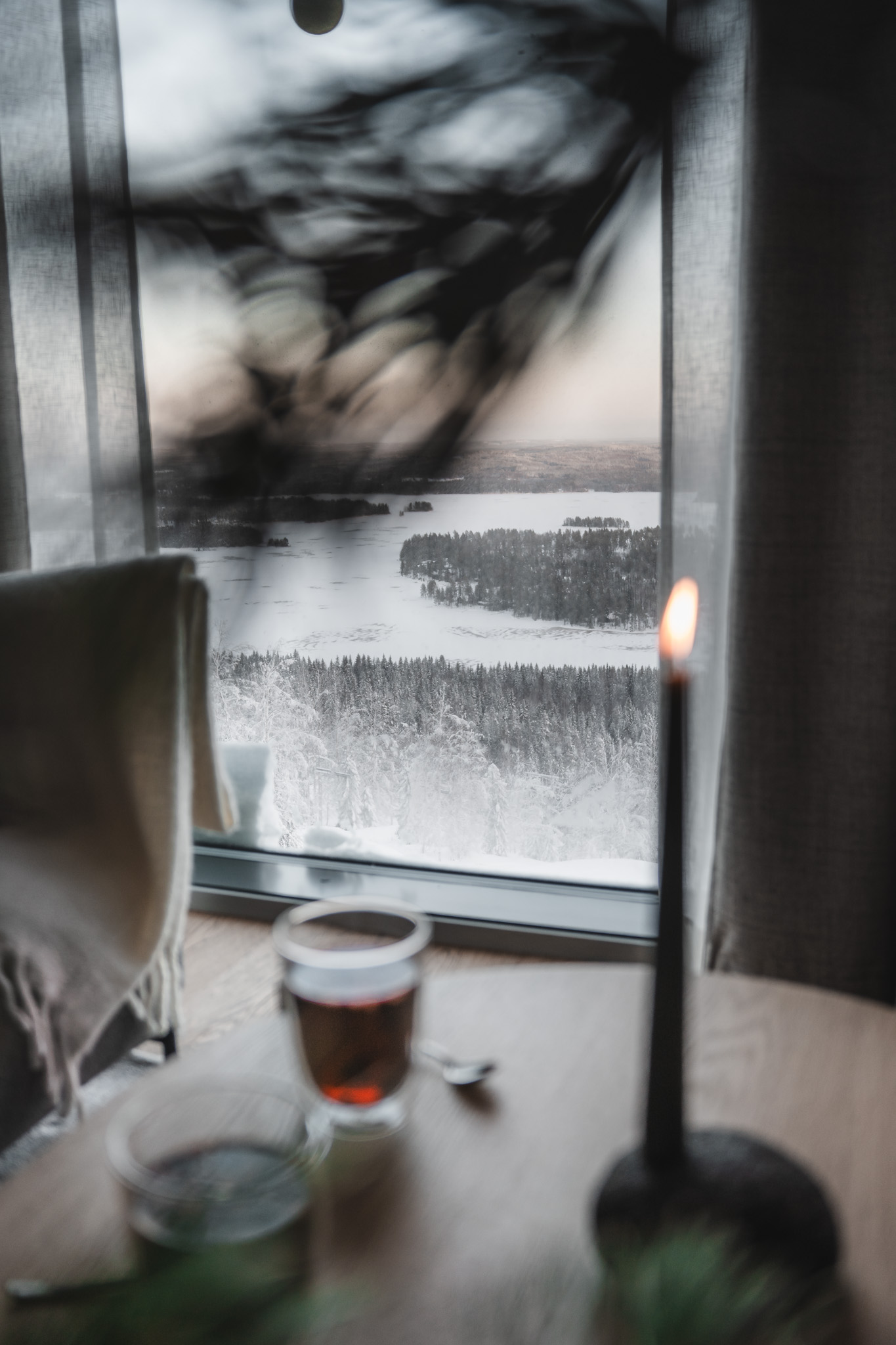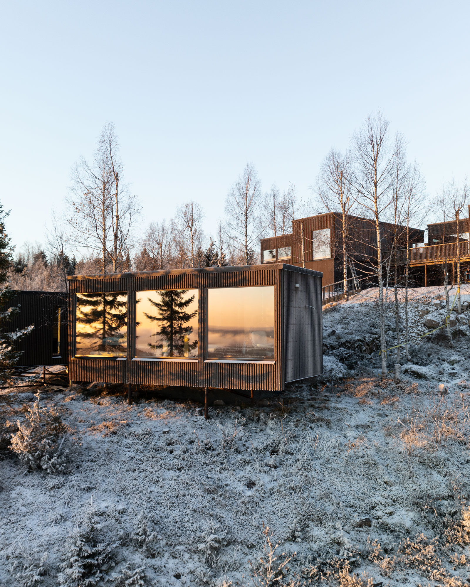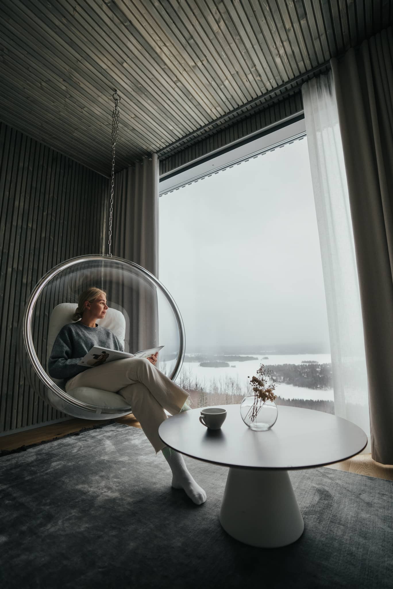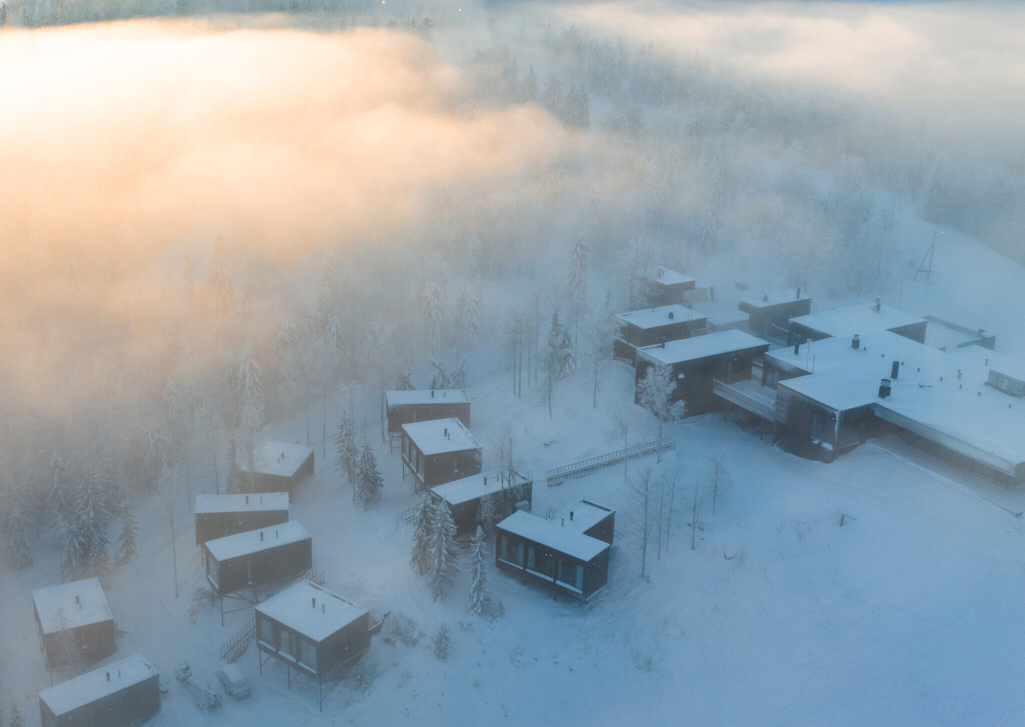 Katsomme maailmaa puunlatvojen korkeudessa, ikkunasta näkyy kauneuden taivaanranta. Olen kuullut metsän taian humisevan havuisten oksien sylissä, lohduttaen kiireistä kansaa. Olemme suojaisalla ja alueen kauneimmalla rinteellä etsimässä hetkiä levähtämiseen, pysähtymiseen ja aitoudesta löydettävään iloon. Hotellimme on kokemus, joka pysäyttää.
